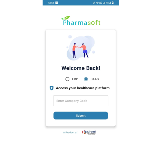 PharmaSoft offers a secure and seamless login experience for companies accessing its pharmaceutical management platform. To maintain controlled and company-specific access, each organization must log in using a unique Company Code generated by the system administrator.